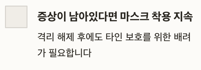 따라서 격리 해제 후에도 증상이 남아 있는 동안은 마스크 착용을 권장합니다.