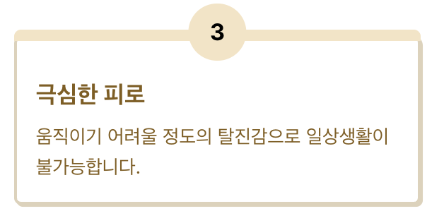 | 극심한 피로 | 움직이기 어려울 정도의 탈진감, 일상생활 불가 |