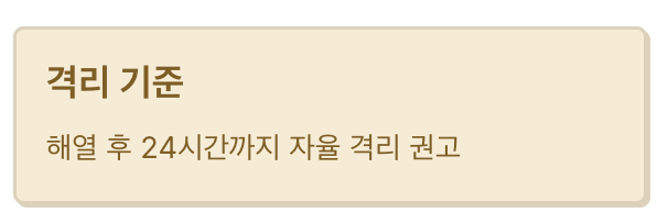| 격리 기준 | 해열 후 24시간까지 자율 격리 권고 |