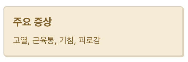 | 주요 증상 | 고열, 근육통, 기침, 피로감 |