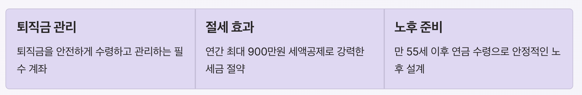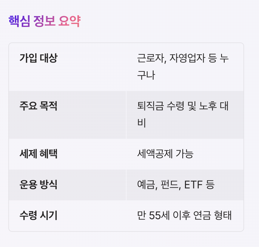 퇴직금 관리 + 절세 + 노후 준비를 동시에 할 수 있는 필수 금융 계좌입니다.