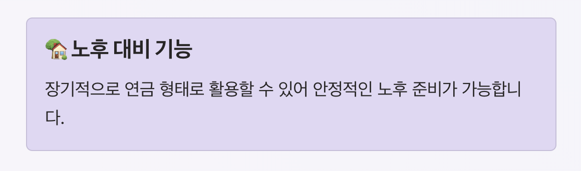 장기적으로 연금 형태로 활용할 수 있어 안정적인 노후 준비가 가능합니다.
