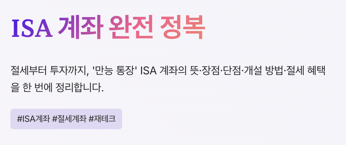 투자를 시작하거나 세금을 줄이고 싶은 분들이라면 한 번쯤 들어봤을 계좌가 있습니다. 바로 ISA 계좌입니다. 최근에는 ‘만능 통장’이라는 별명까지 붙으면서 많은 관심을 받고 있습니다.
