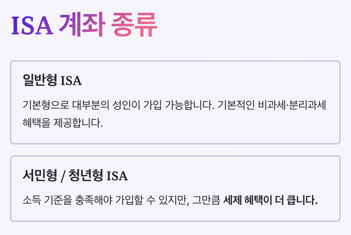 | 일반형 ISA | 기본형, 대부분 가입 가능 |