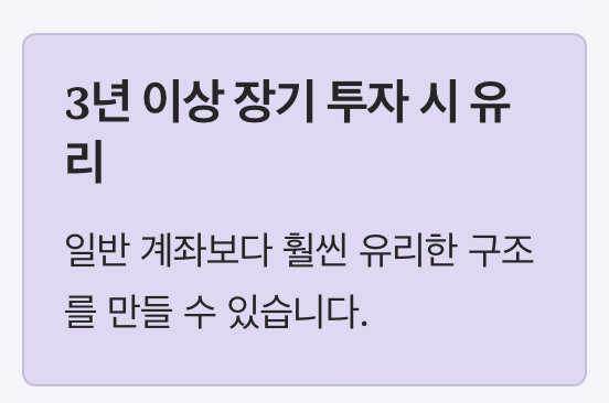 이 구조 때문에 일반 계좌보다 훨씬 유리한 조건에서 투자가 가능합니다.