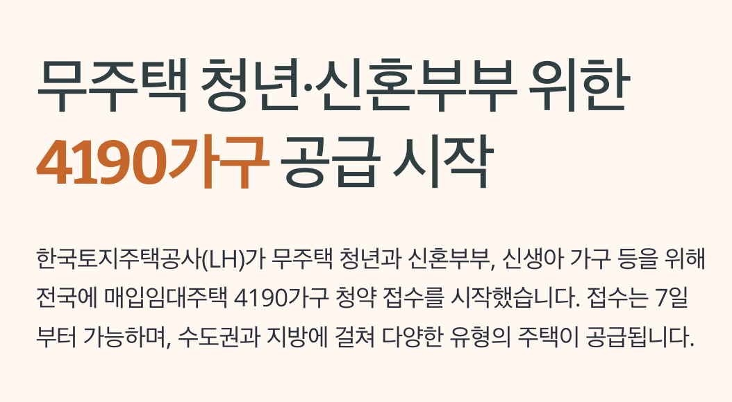 위해 전국에 매입임대주택 4190가구 청약 접수를 시작했습니다.