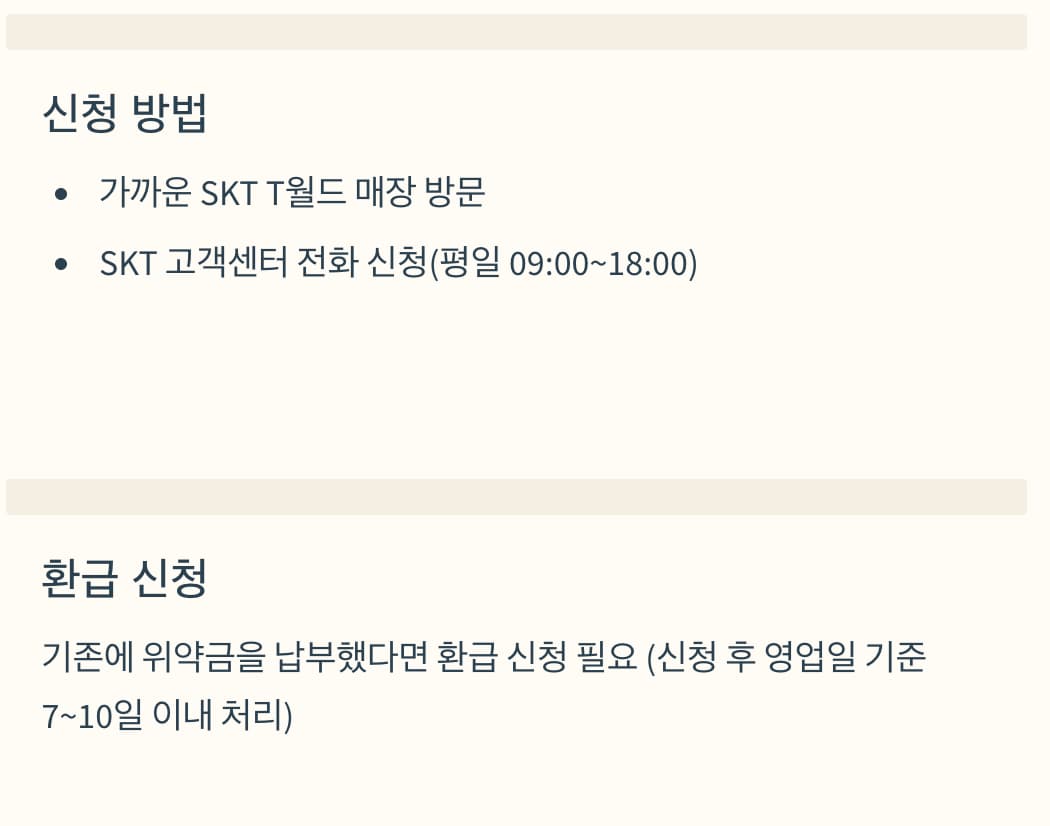 - 기존에 위약금을 납부했다면 환급 신청이 필요합니다.