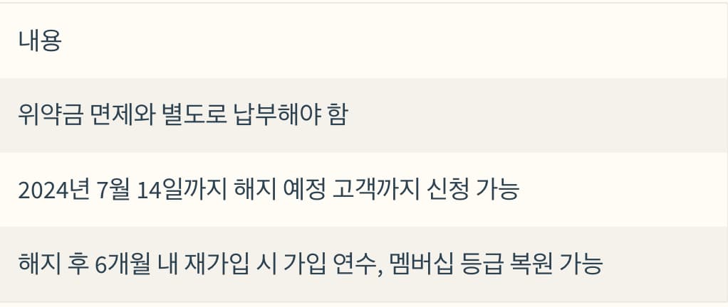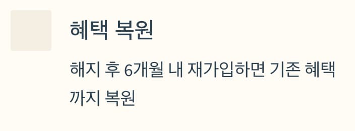- 해지 후 6개월 내 재가입하면 기존 혜택까지 복원