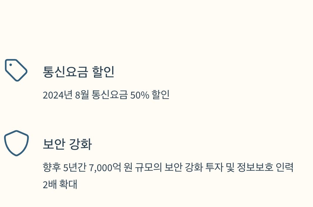 - 향후 5년간 7,000억 원 규모의 보안 강화 투자 및 정보보호 인력 2배 확대